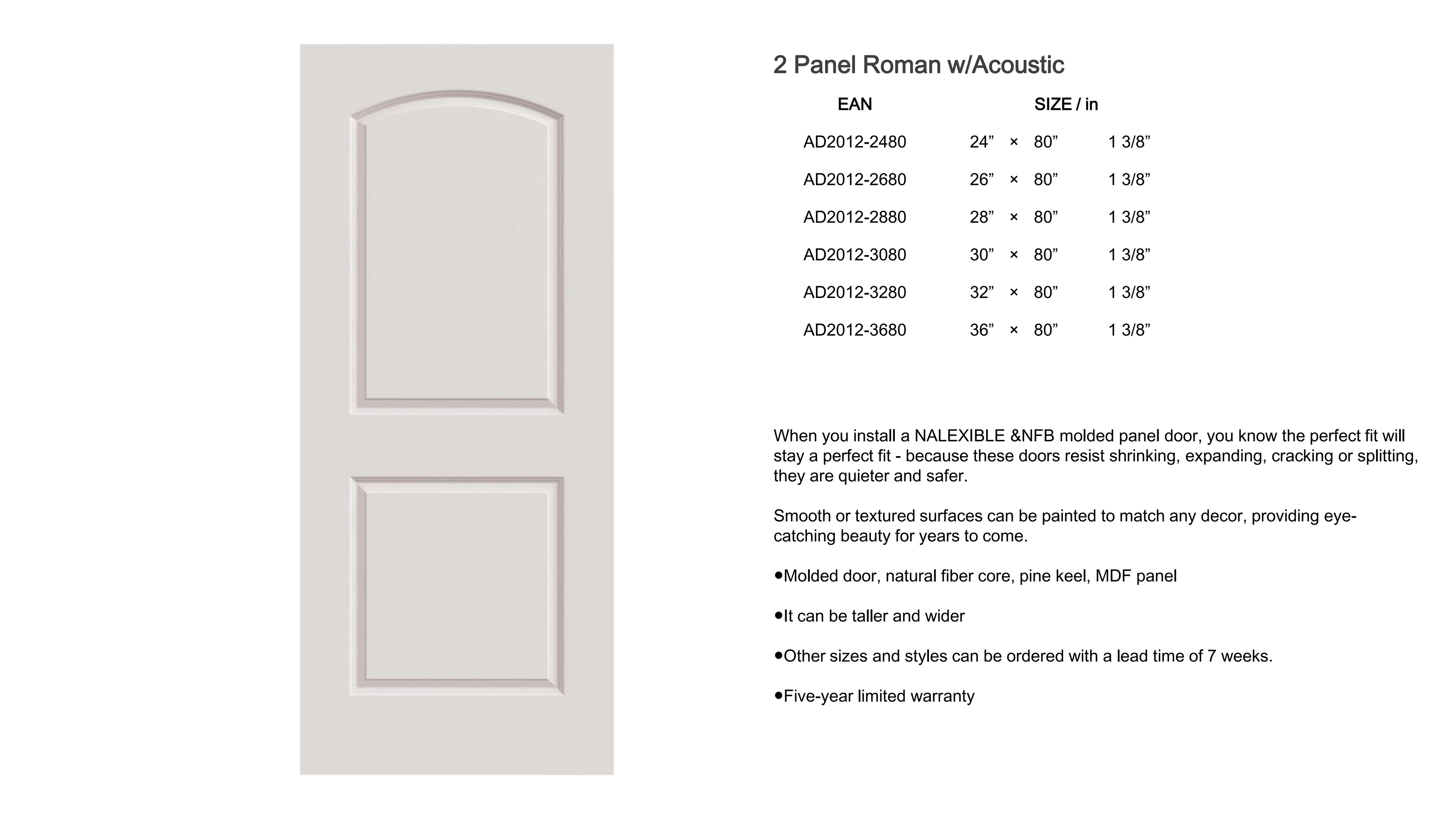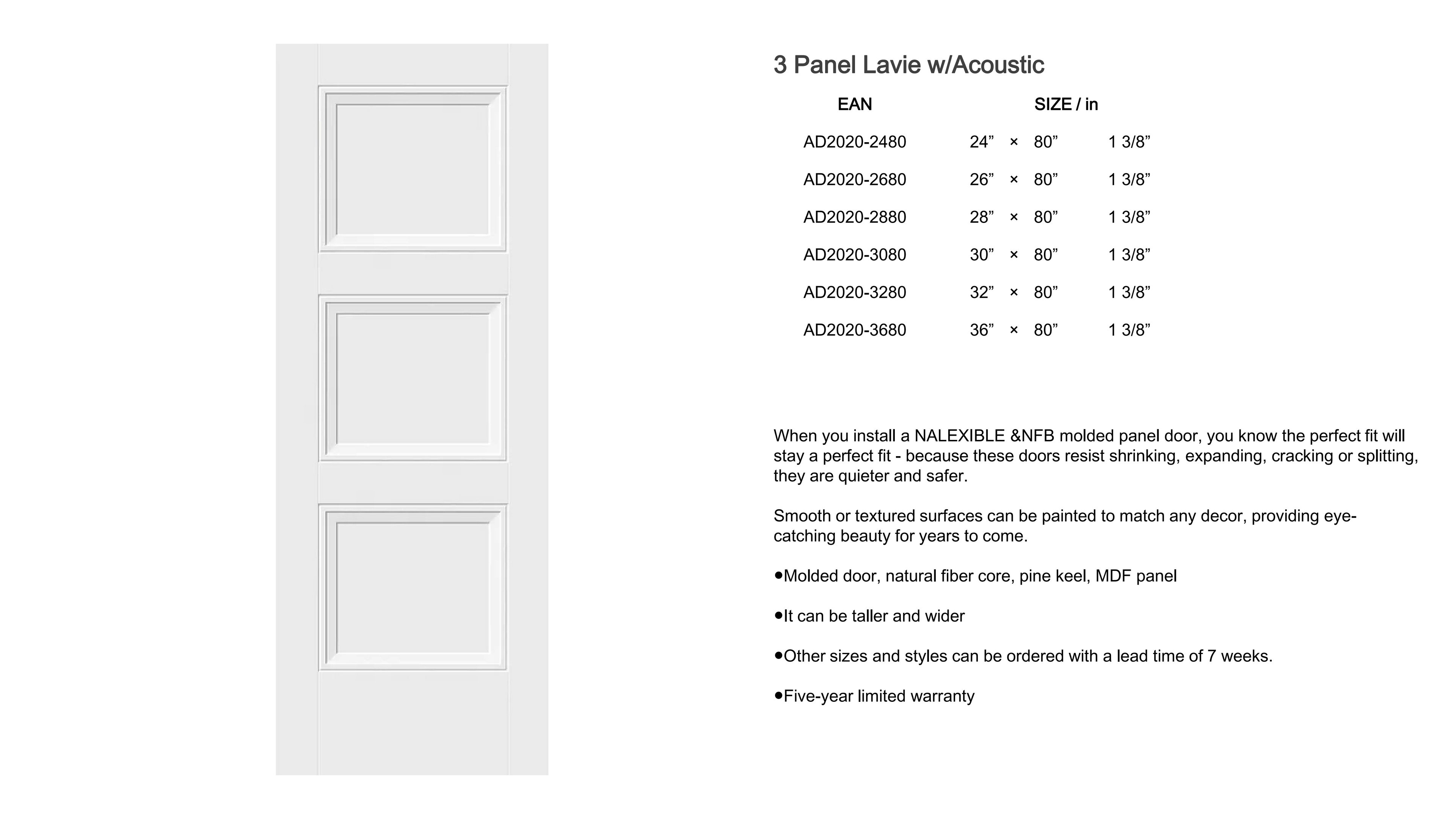 From bedrooms and offices to apartments and entryways, this acoustic molded door brings strength, comfort, and sustainability together in one intelligent solution.