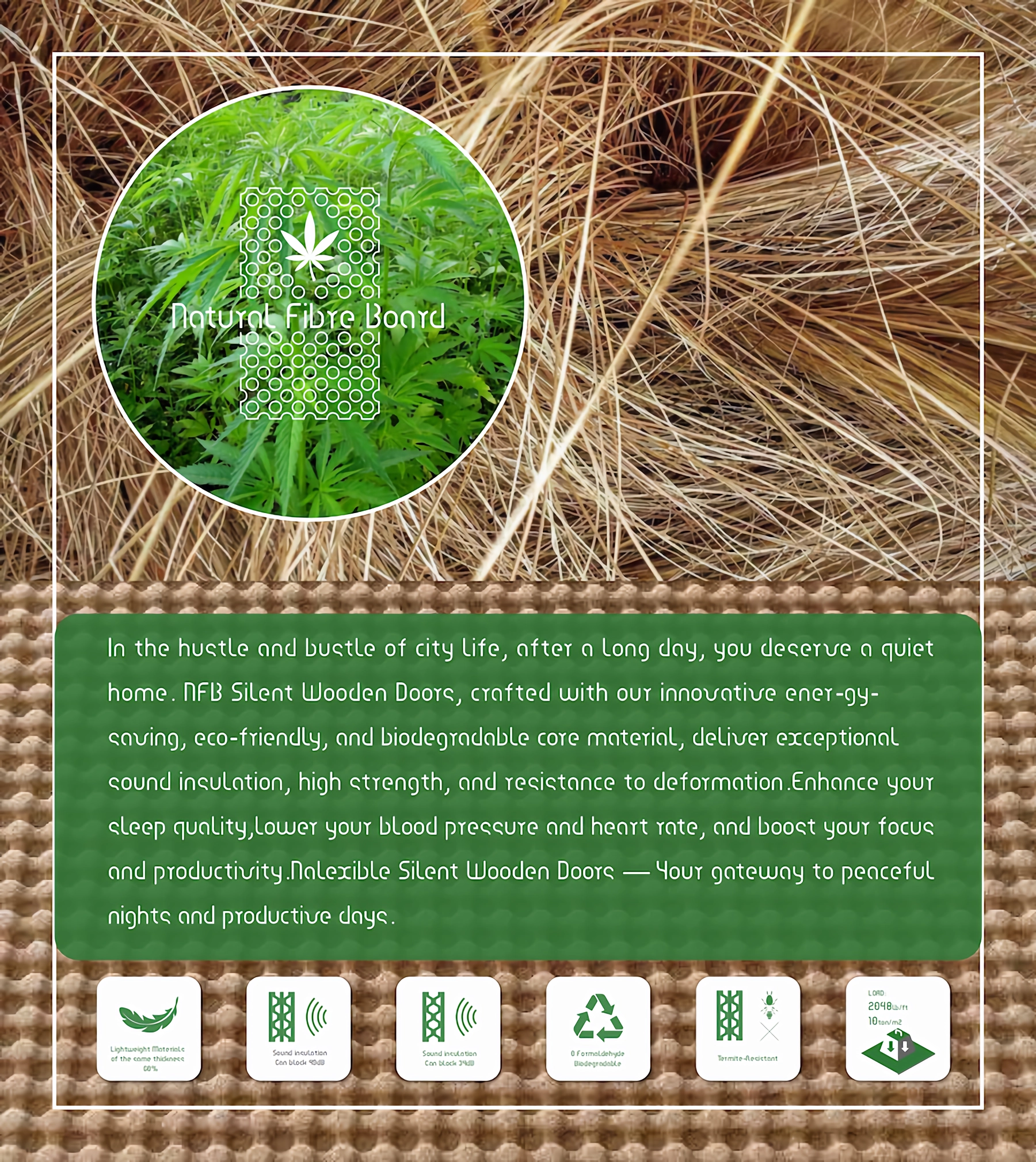 Engineered for modern interiors, the NFB Molded Panel Door pairs visual elegance with real performance. Its 100% plant-based natural fibre core (zero formaldehyde), pine keel, and MDF skin deliver acoustic comfort with the strength and stability you need—so one door can serve entry, interior, and wet-area use.